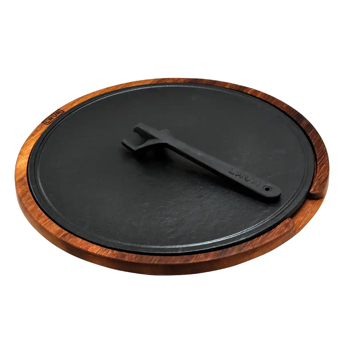 Lava Döküm Ahşap ve Döküm Demir Hot Plate Servis Tahtası. Çap(Ø)34cm.