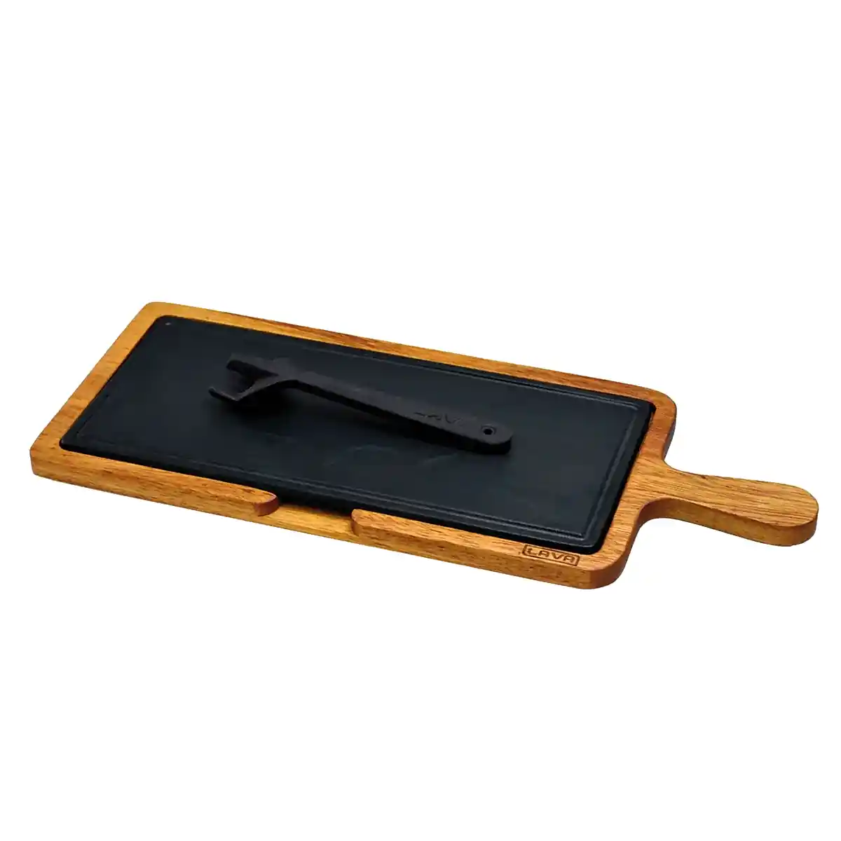 Lava Döküm Ahşap ve Döküm Demir Hot Plate Servis Tahtası. Ölçü 17x37cm.
