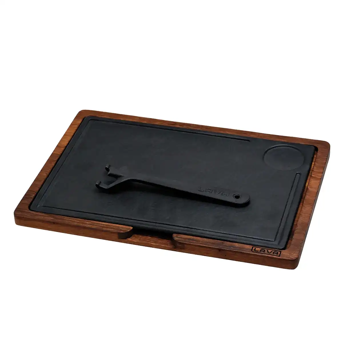 Lava Döküm Ahşap ve Döküm Demir Hot Plate Servis Tahtası. Ölçü 22x33cm.