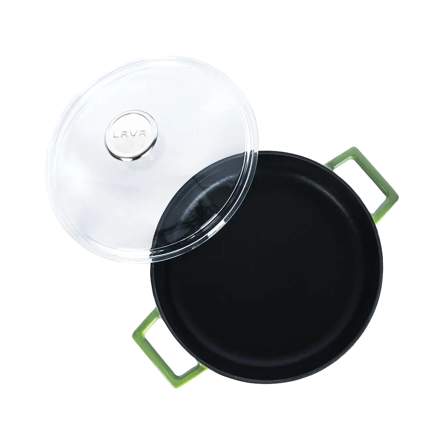 Sofranıza yakışacak rengarenk LAVA Döküm 24 cm Cam Kapaklı Çok Amaçlı Yayvan Tencere ile kolaylıkla tam kıvamında bir tereyağlı pilav, lezzetli bir zeytinyağlı sarma veya karnıyarık hazırlayabilirsiniz.