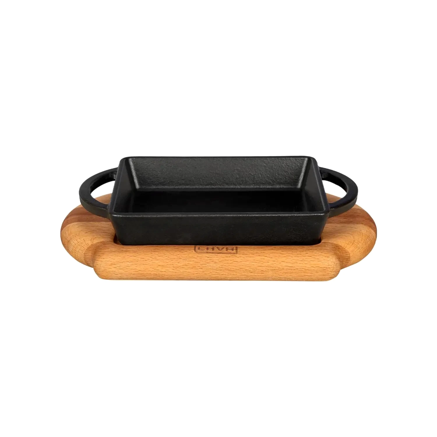 Lava Döküm Dikdörtgen Sahan Döküm Demir Yekpare Çift Kulplu Kayın Servis Ahşabı Ölçü 12x15cm.