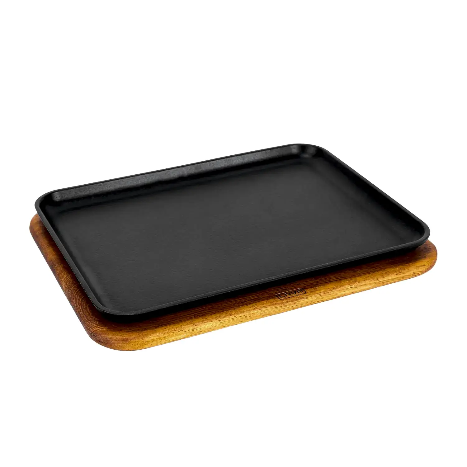Lava Döküm Dikdörtgen Servis Tabağı Kayın Servis Ahşabı. Ölçü 34x25cm.