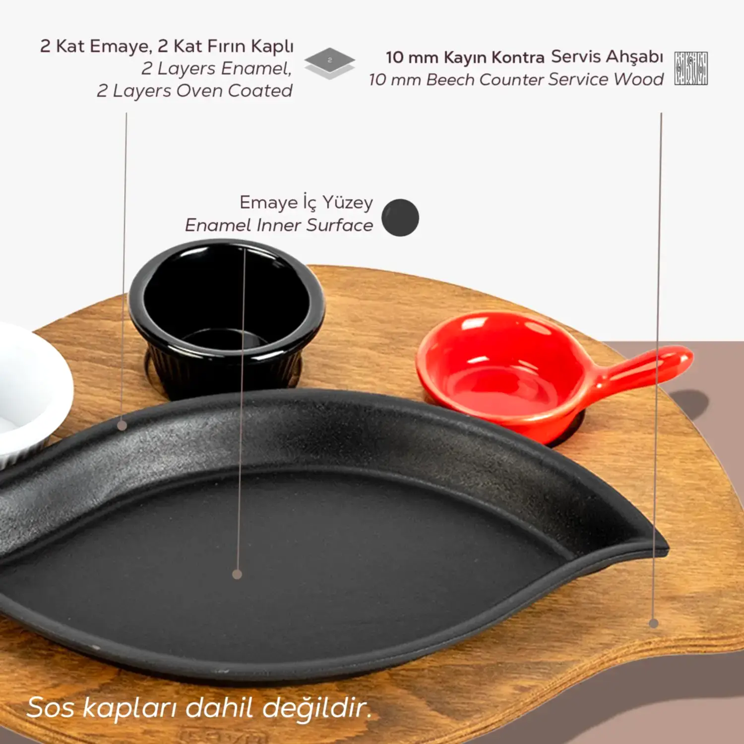EtiketlerLava Döküm Dikdörtgen Servis Tabağı ve Ahşap altlığı. Ölçü 15x26cm.