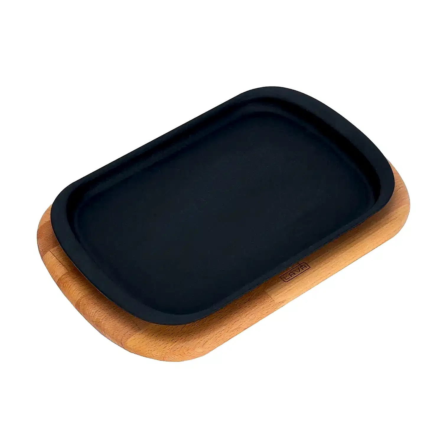 Lava Döküm Dikdörtgen Servis Tabağı ve Kayın Servis Ahşabı. Ölçü 32x20cm.