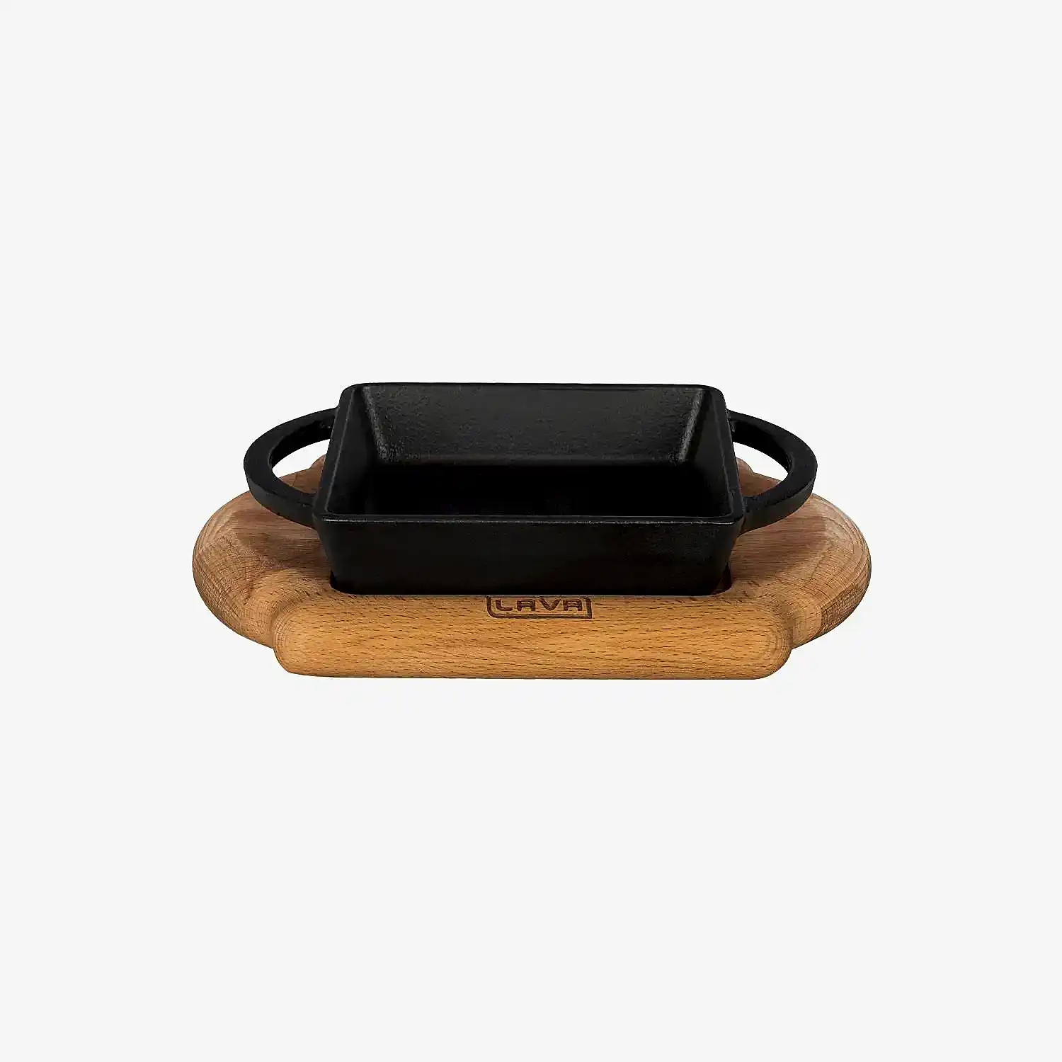 EtiketlerLava Döküm Kare Sahan Döküm Demir Yekpare Çift Kulplu Kayın Servis Ahşabı Ölçü 12x12cm.