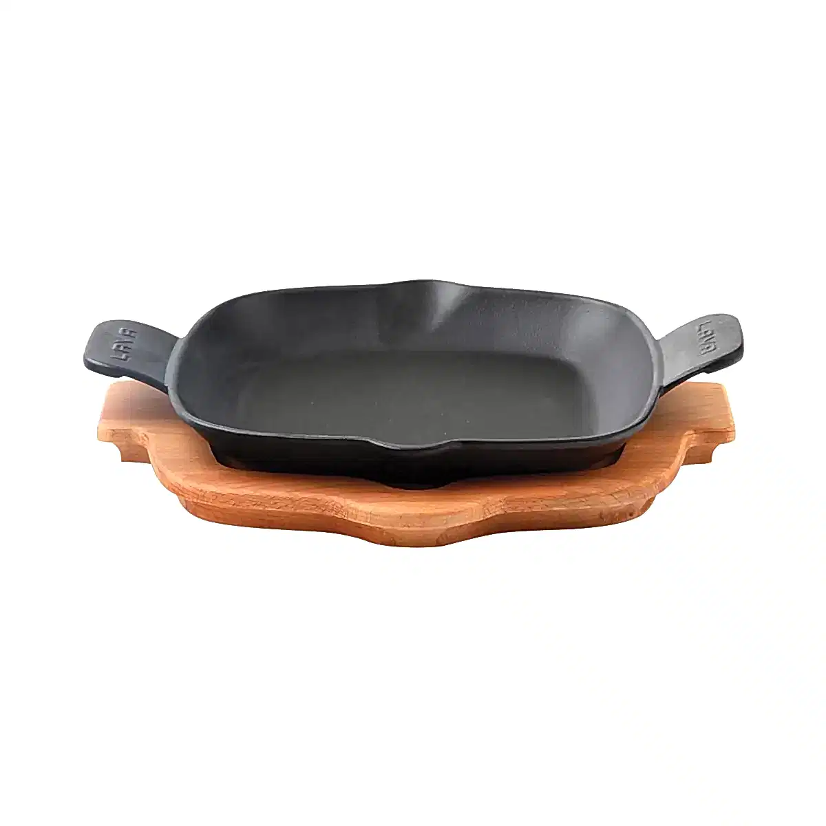 EtiketlerLava Döküm Kızartma Tavası Kayın Servis Ahşabı Döküm Demir Yekpare Çift Kulplu Ölçü 26x26cm.