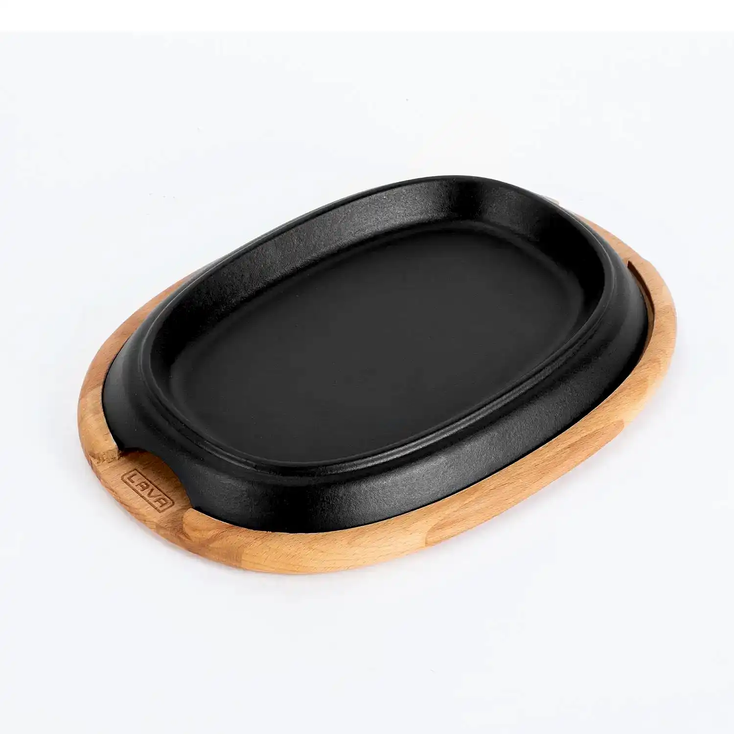 Lava Döküm Oval Fajita Tabağı Kayın Servis Ahşabı Ölçü 26x19cm.