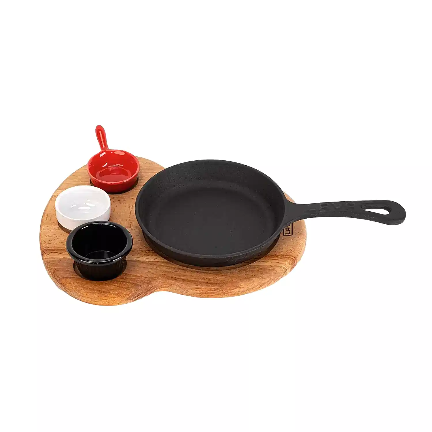 EtiketlerLava Döküm Yuvarlak Kızartma Tavası Yekpare Saplı Kayın Ahşap Altlık. Çap(Ø)16cm. (Bu ürüne sos kapları dahil değildir)