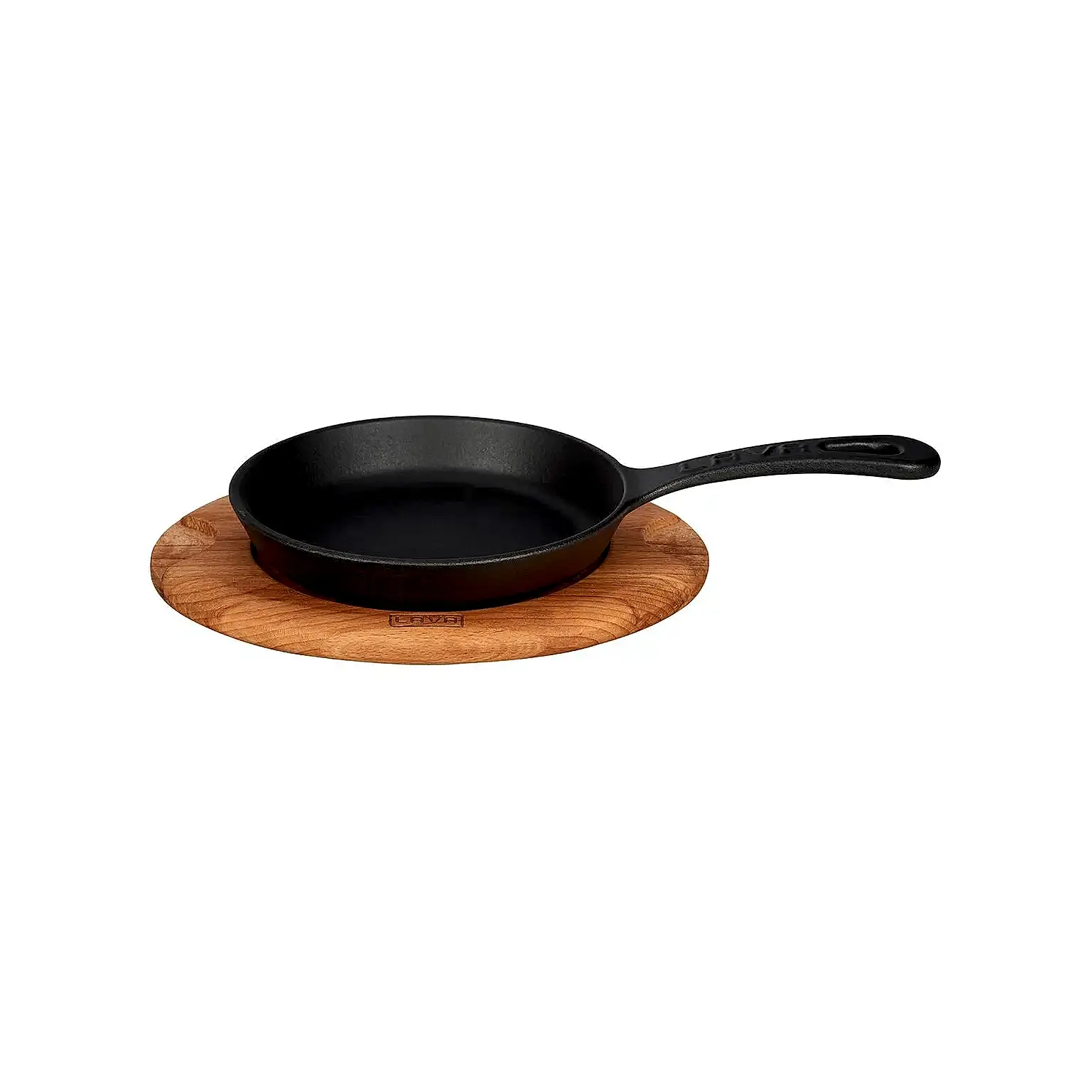 EtiketlerLava Döküm Yuvarlak Kızartma Tavası Yekpare Saplı Kayın Servis Ahşabı. Çap(Ø)16cm.