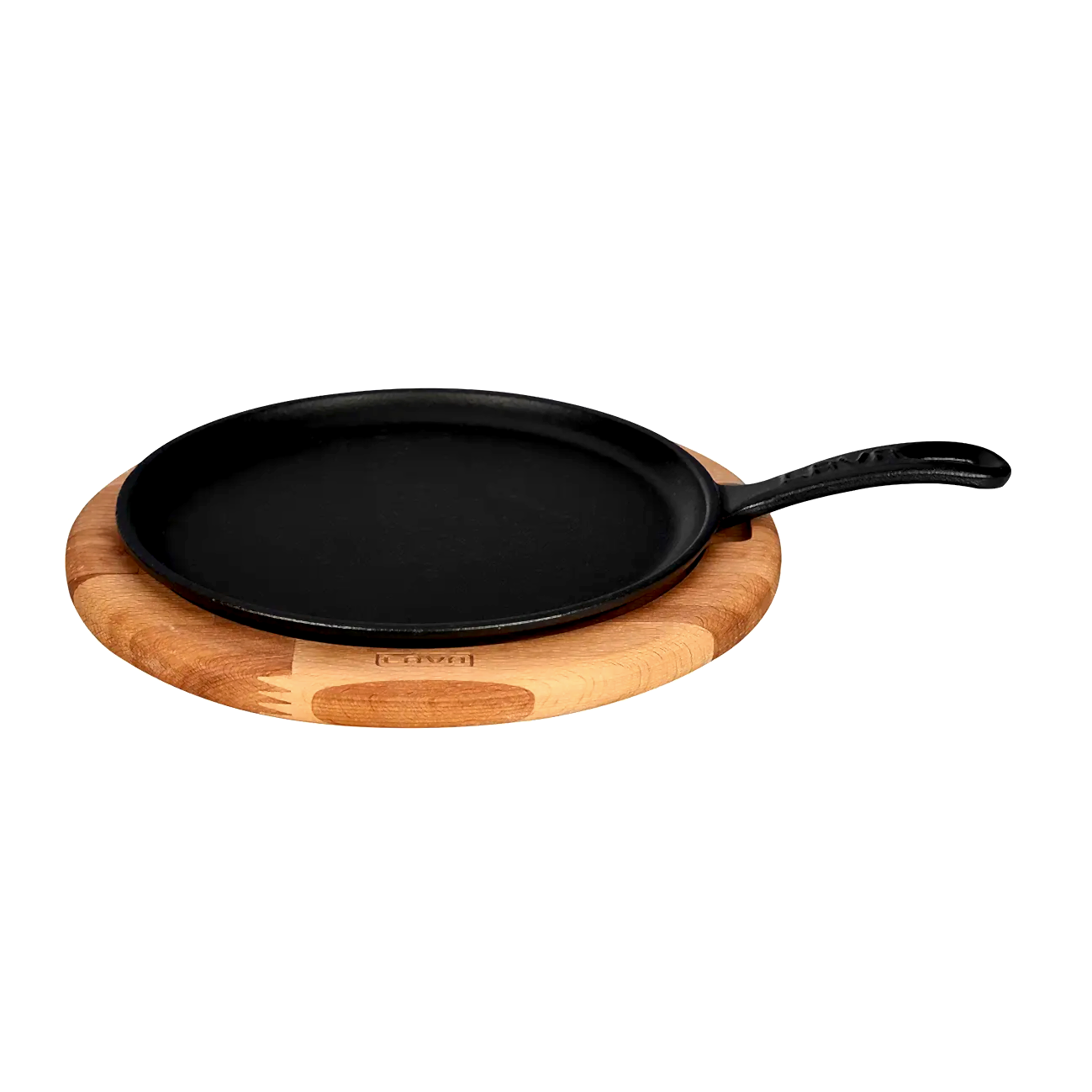 Lava Döküm Yuvarlak Pizza Krep Pankek Tavası Döküm Demir Yekpare Saplı Kayın Servis Ahşabı Çap(Ø)20cm.