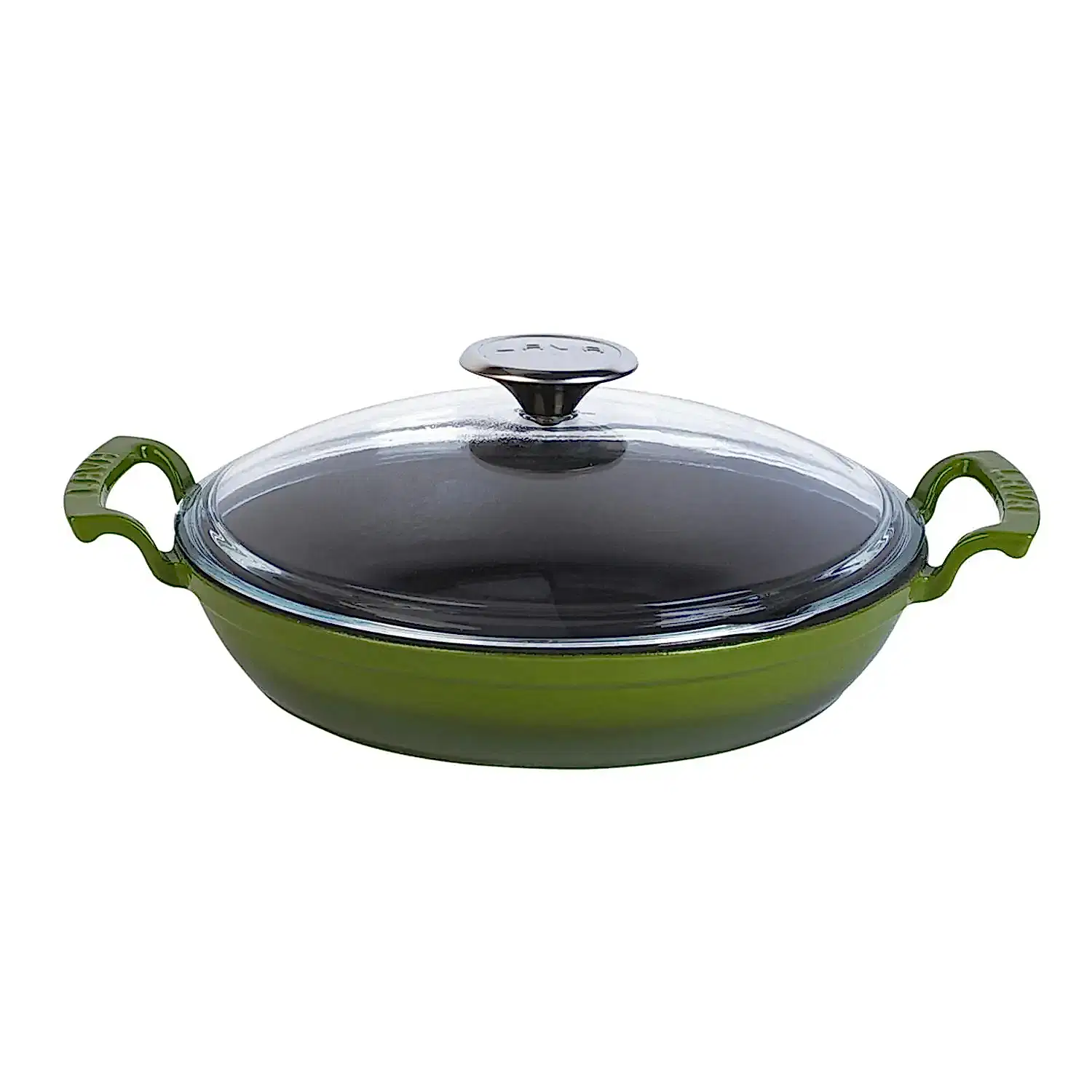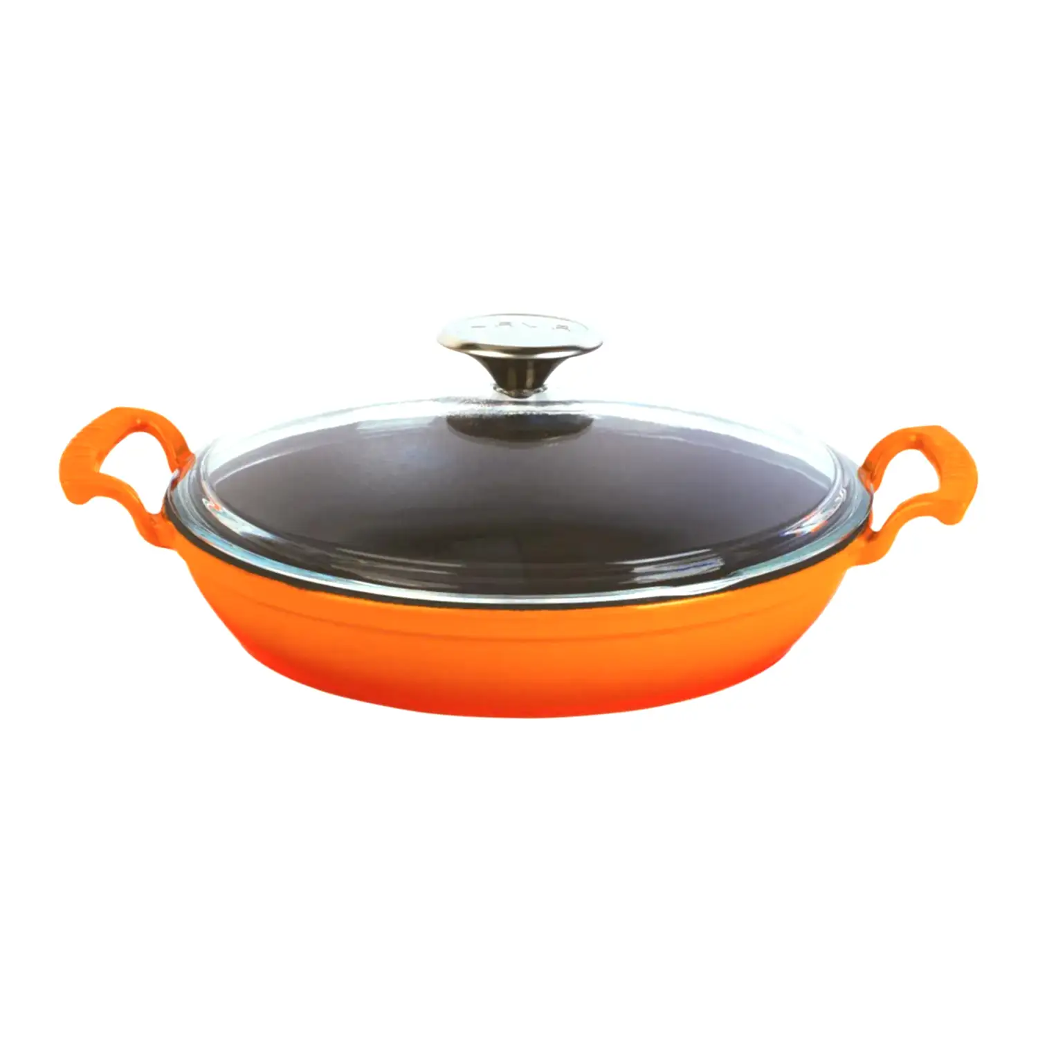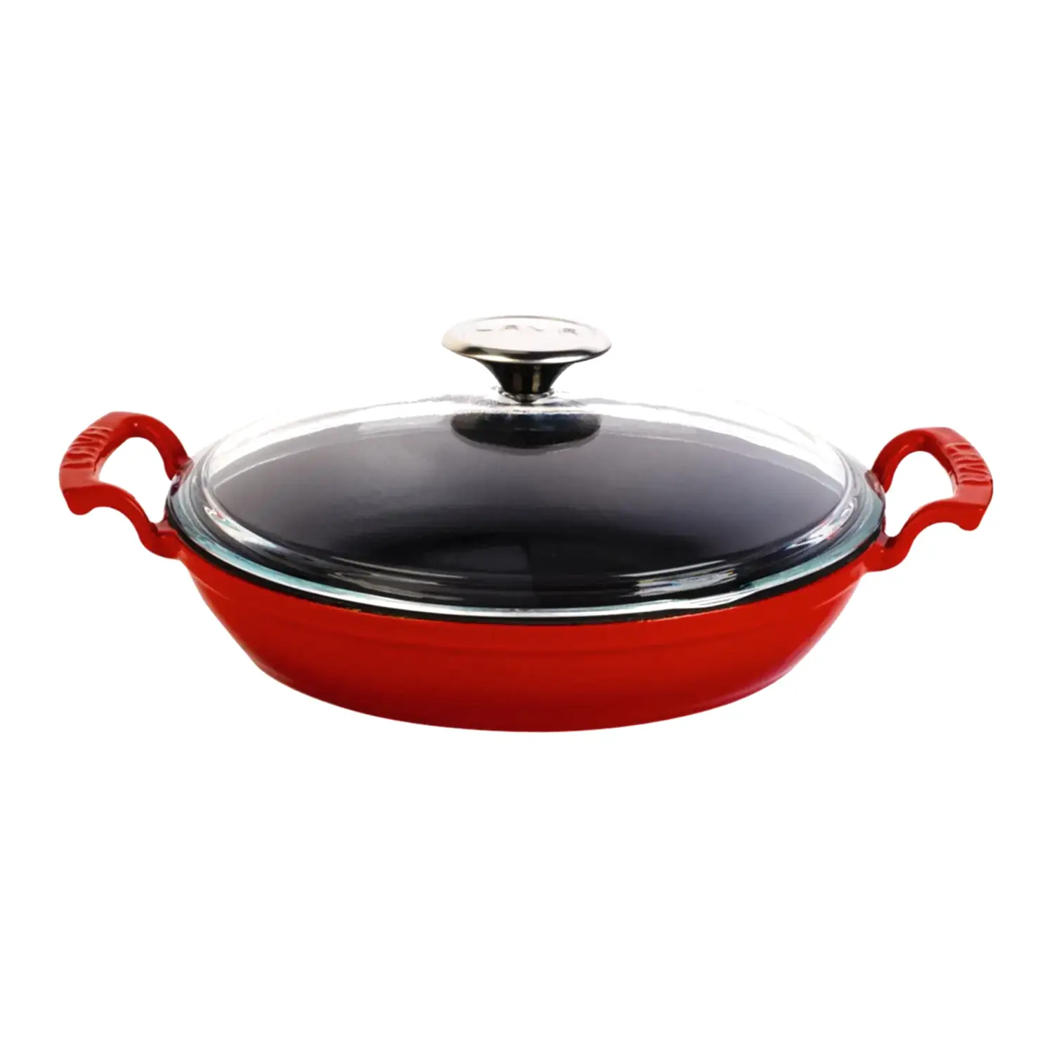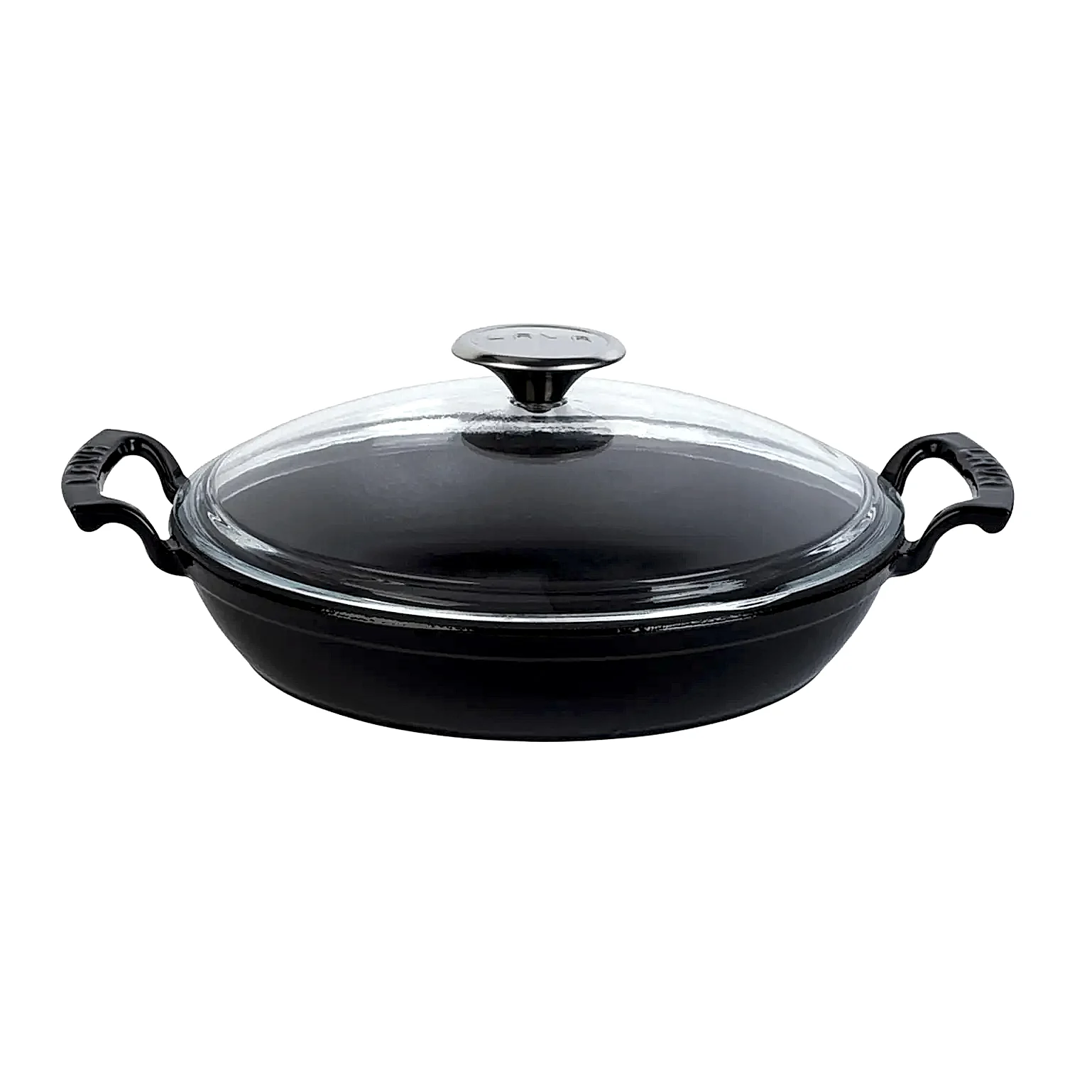 Lava Döküm Yuvarlak Sahan Cam Kapaklı Döküm Demir Yekpare Çift Kulplu Çap(Ø)24cm.