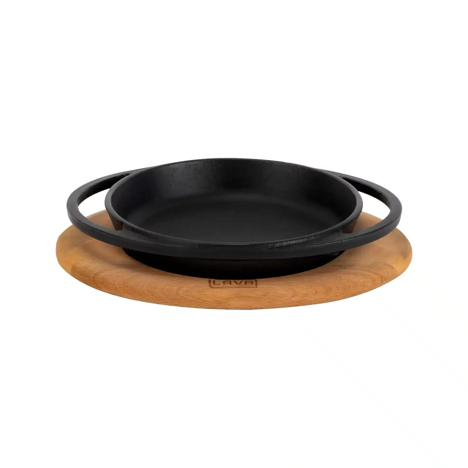 EtiketlerLava Döküm Yuvarlak Sahan Döküm Demir Yekpare Çift Kulplu Kayın Servis Ahşabı Çap(Ø)16cm.