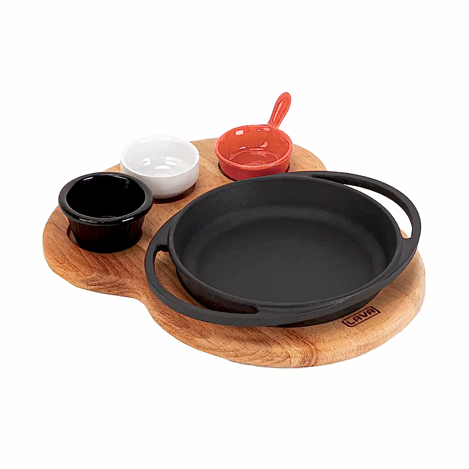 Lava Döküm Yuvarlak Sahan Döküm Demir Yekpare Çift Kulplu Kayın Servis Ahşabı Çap(Ø)16cm. (Sos Kapları Dahil Değildir.)