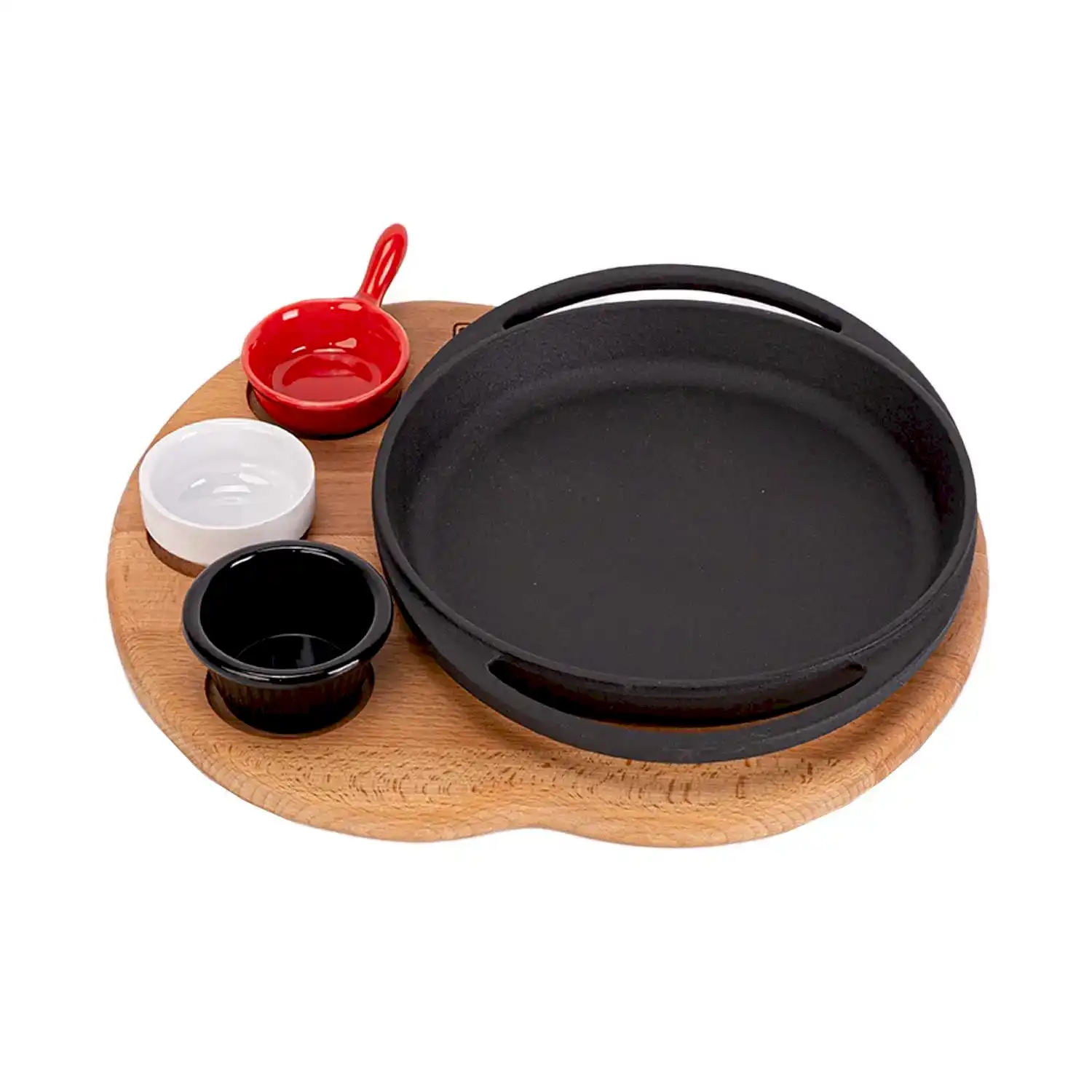 Lava Döküm Yuvarlak Sahan Döküm Demir Yekpare Çift Kulplu Kayın Servis Ahşabı Çap(Ø)20cm. (Sos kapları dahil değildir.)