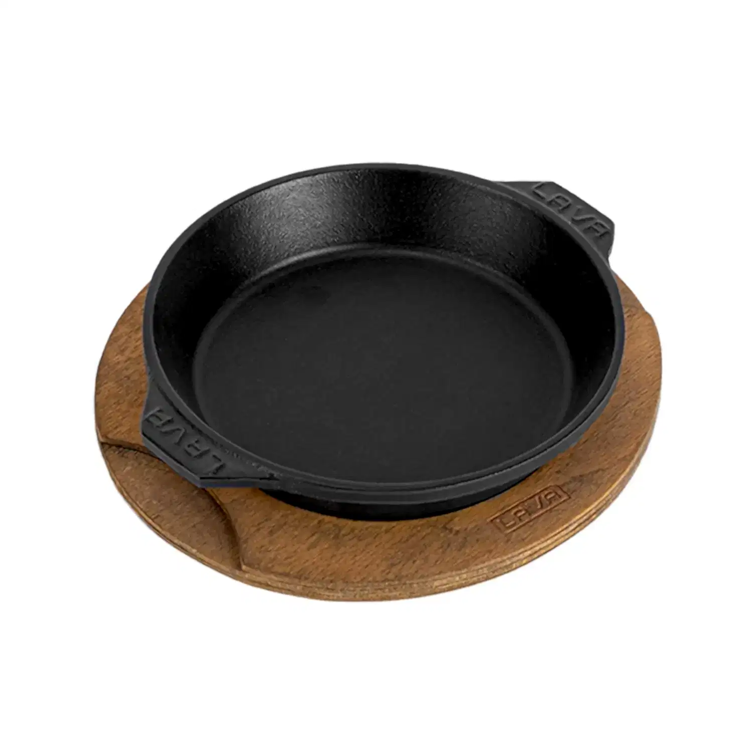 EtiketlerLava Döküm Yuvarlak Servis Tabağı ve Ahşap altlığı. Çap(Ø)16cm.